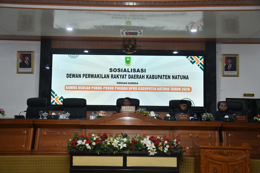 DPRD Natuna menyelenggarakan sosialisasi kamus usulan pokok-pokok pikiran DPRD Kabupaten Natuna Tahun 2026 untuk memastikan aspirasi masyarakat dapat terserap dengan baik ke dalam perencanaan pembangunan daerah. Kegiatan ini diikuti oleh anggota DPRD Kabupaten Natuna, BP3D Kabupaten Natuna, BPKPD Kabupaten Natuna, serta pihak-pihak lainnya, Rabu (15/01/2025).
